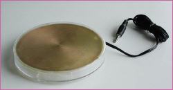 Hochfrequenz Tesla Audiotransformator 109,90.- netto Diese Spule hat die gleichen Daten wie die auf der Vorderseite. Jedoch ist sie in einem transparenten Rundgehäuse eingebaut. Die Einkoppelwindung ist direkt, wie im Foto mit einem flexiblen Kabel für direkten Gebrauch an CD Playern ausgestattet. Technische Daten: Spulendurchmesser: 110 mm, rund mit 170 Windungen Spulenwiderstand: Einkoppelwindung 7 - 8 Ohm Anschlußkabel: Stereokabel 1 Meter mit 3,5 mm Klinkenstecker Die Spule 900 - 170 ist eine Transformation mit 60 facher Verstärkung in eine elektrische Raumwelle (Longitudinale Welle)