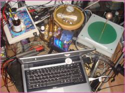 Der niederomige Eingang beträgt zwischen 7 - 9 Ohm Gleichstromwiderstand. Der Wellenwiderstand beträgt je nach Frequenz zwischen 30 und 70 Ohm. Die Primärwicklung ist an der Unterseite der Platine angebracht. Das Eingangssignal wird nun in der Sekundärspule verstärkt und in ein” Elektrisches - Raumfeld” umgesetzt. Somit lassen sich Audiosignale von niederohmigen Audioausgängen in ein elektrisches Raum - Feld transformieren. Diese Präzisions - Flachspule besteht aus einer Primär- und Sekündärwindung und ist in einem transparenten Rundgehäuse eingebaut. Die Primär - Einkoppelwindung ist direkt, wie im Foto mit einem flexiblen Kabel für direkten Gebrauch an CD Playern ausgestattet. Der 3,5 mm Klinkenstecker passt in jeden Audioausgang.